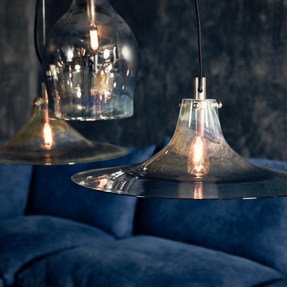 Designed with a timeless flared shape, the Anchor pendant is made using a hand glass blowing technique that has remained relatively unchanged since it was invented in Syria thousands of years ago in 300BC. These beautiful glass pendants are lightweight yet robust, showcasing an organic design with a soft iridescence in the finish.