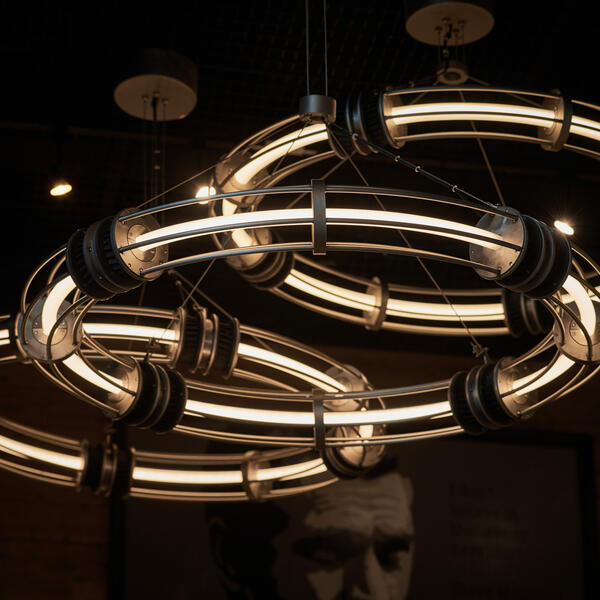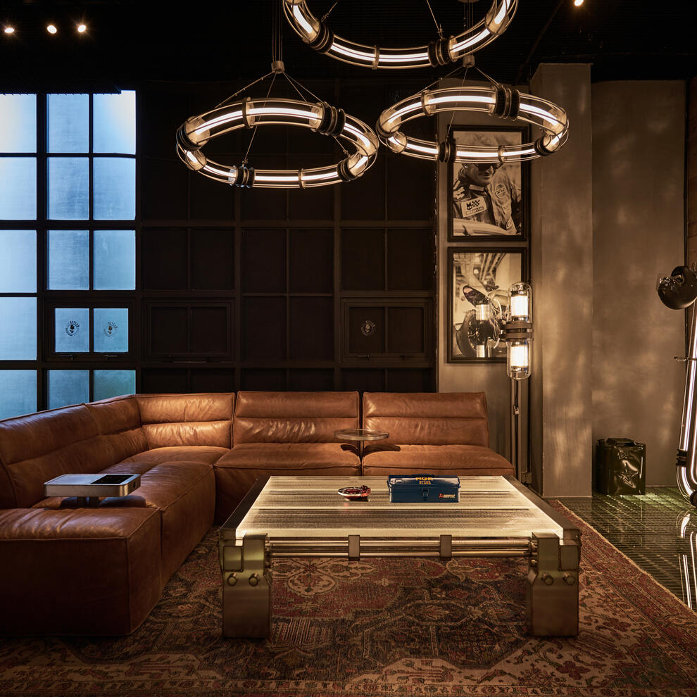 The Arc Collection is inspired by electric arcs and the trail of light seen during flash welding, a glow often seen in workshops fabricating parts for cars, bikes, or other machines. The idea behind the design was to capture that flash when the high voltage point strikes the arc and releases a massive amount of energy and glow, and incorporate it as a continuous, controllable glow within a mirror, table, or pendant. Part of our Outlaw Collection, inspired by the industrial and automotive world.