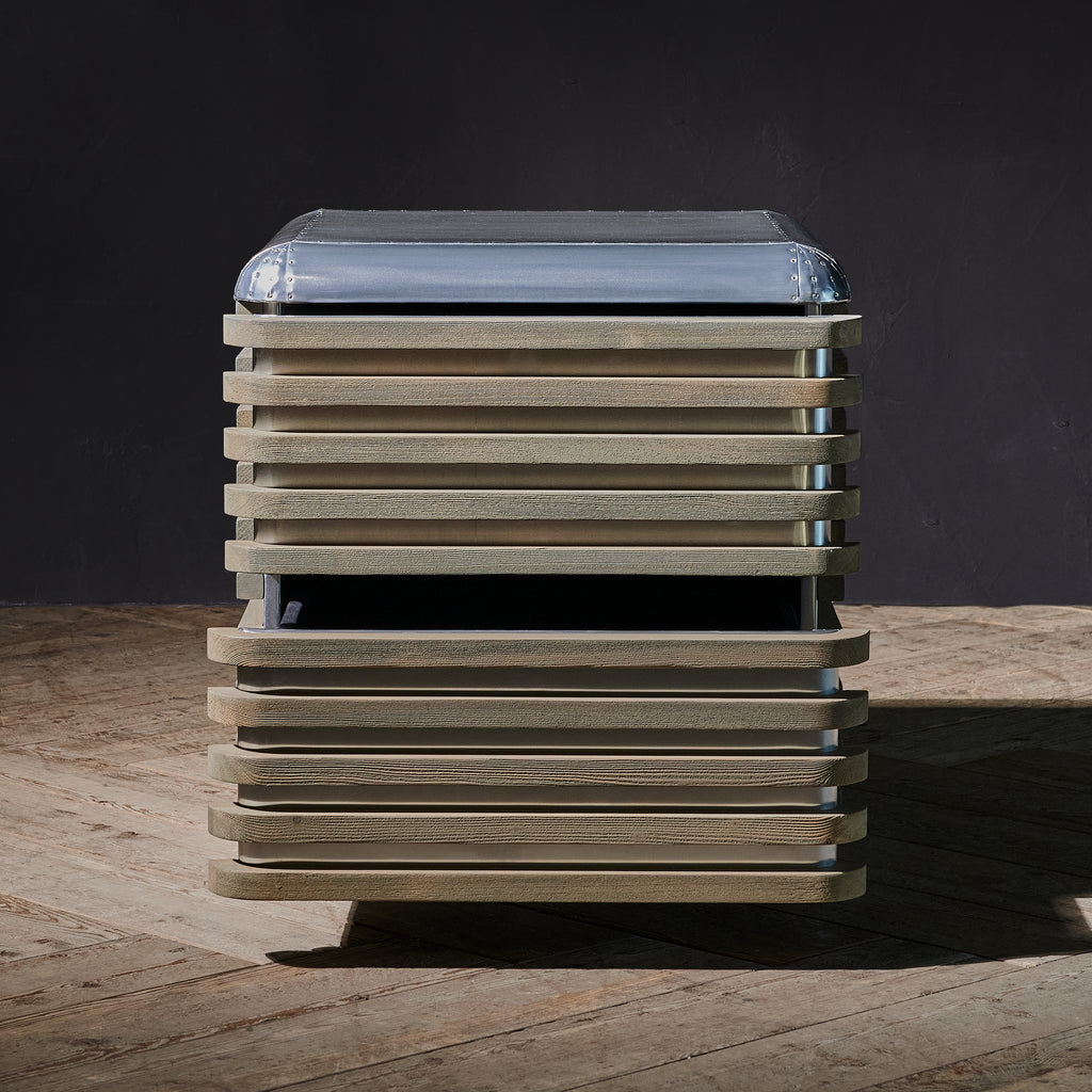 Introducing our coastal-inspired Castaway side table, where brushed aluminium meets beach wood to create a compelling look. Opposites attract as these two diverse materials unite to form objet d'art. Soft rounded corners are contrasted with the calming slatted lines of wood, highlighting the collection's true beauty.