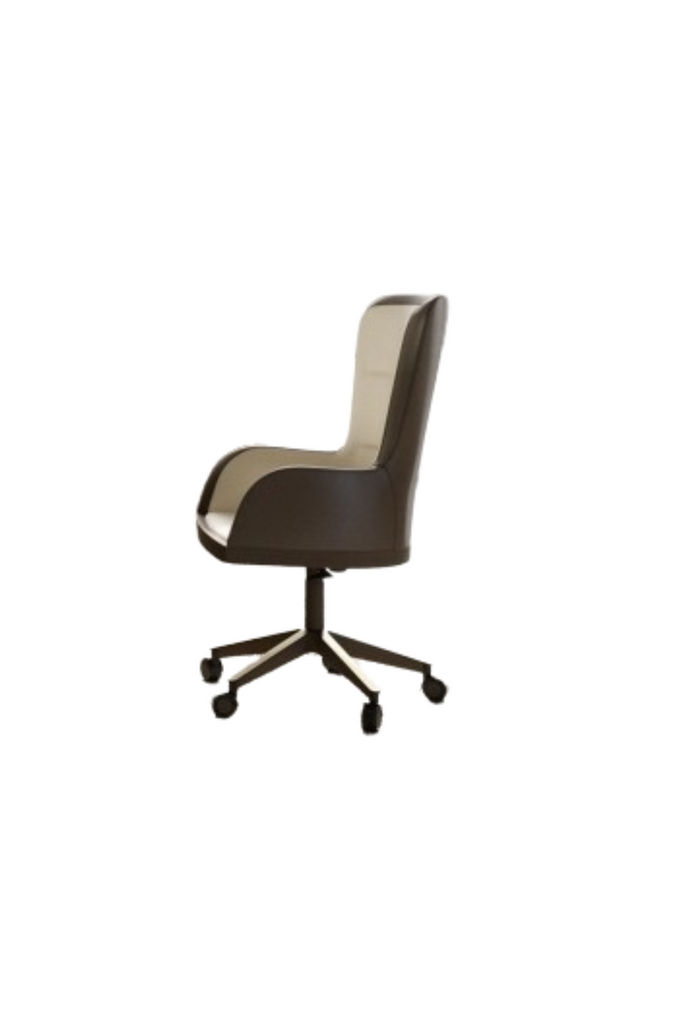 upholstered high back armchair on swirling base with tilting mechanism, Sucupira or natural oak wooden frame, fabric or leather back outside, same or different fabric or leather back inside and seat.
