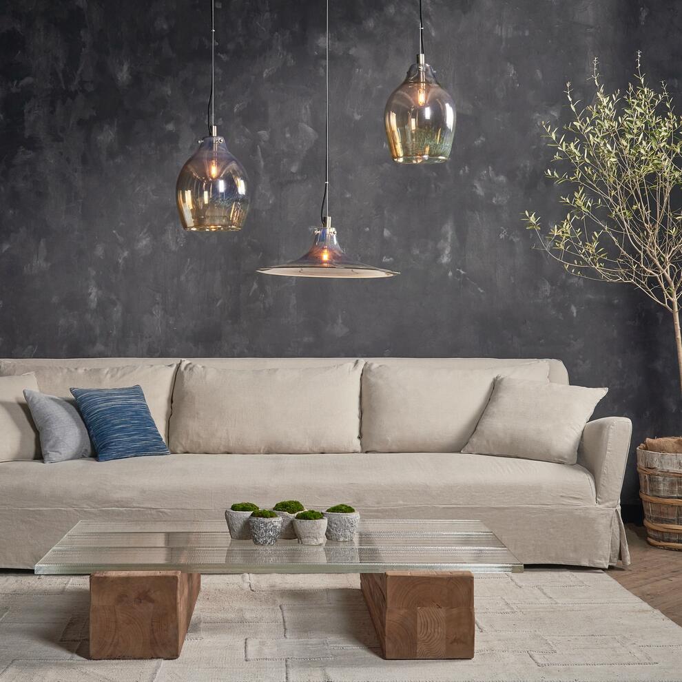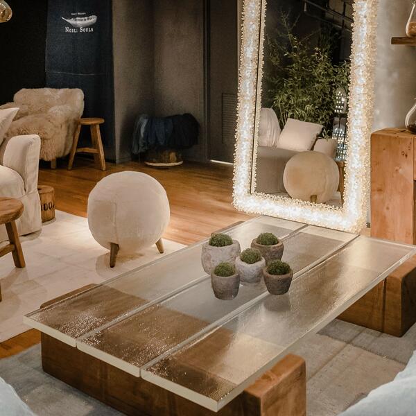 Proving the adage that there is beauty in simplicity, the epic Icebeam coffee table grounds a space with its mighty reclaimed timber blocks topped with three ice-like beams of glass. The timber is around 100 years old, salvaged from old English buildings, with surface fissures, cracks, and indentations left in as testament to its former life. The glass beams have a subtle rippled texture which adds visual depth.