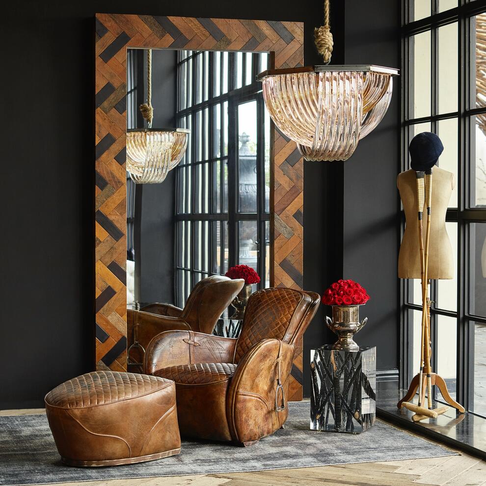 Beautifully striking, the Edwardian mirror is fashioned from reclaimed parquetry oak. Originally forming the floors of Edwardian dancehalls and other buildings in the UK, the timber is over 100 years old, bringing a century of history and character into your home. The reclamation of the wood is a long and arduous journey; each block is carefully removed by hand and cleaned before making its way to our workshop, where craftsmen use meticulous skill to lay each block - by hand - into the distinctive chevron pattern, creating a rustic surface full of personality and charm.