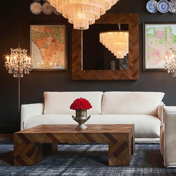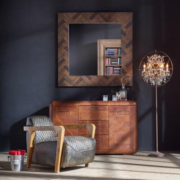 Beautifully striking, the Edwardian mirror is fashioned from reclaimed parquetry oak. Originally forming the floors of Edwardian dancehalls and other buildings in the UK, the timber is over 100 years old, bringing a century of history and character into your home. The reclamation of the wood is a long and arduous journey; each block is carefully removed by hand and cleaned before making its way to our workshop, where craftsmen use meticulous skill to lay each block - by hand - into the distinctive chevron pattern, creating a rustic surface full of personality and charm.
