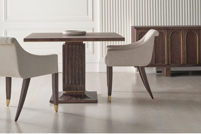 The silhouette of the Rialto Arm Chair was inspired by the gondolas that glide through the canals of Venice. Small in scale, yet extremely comfortable, the chair’s flowing curves and gentle roll of the back offer a beautiful form to surround any table.