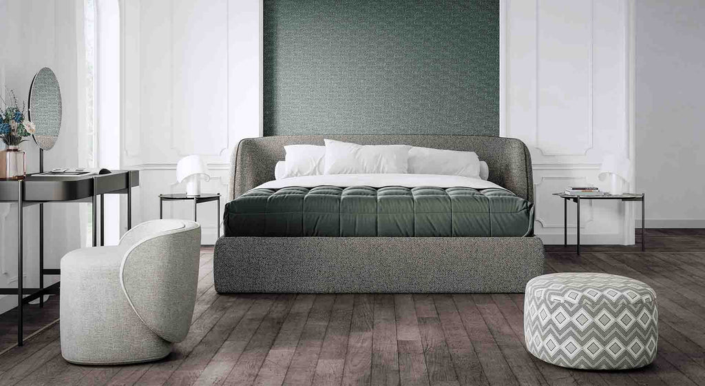 The Caillou Bed represents a perfect balance between rational forms and glamorous details, giving the structure a strong and distinctive personality. The design of this bed is based on two fundamental concepts: the softness of the lines and the refinement of the materials used. The compact and harmonious forms are designed not only to offer an elegant aesthetic but also unparalleled comfort.
