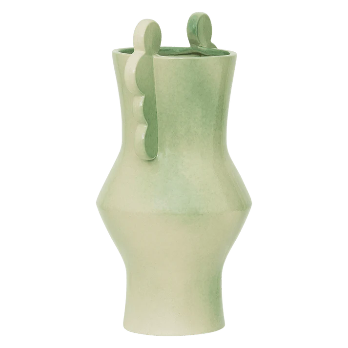 Art is freedom, breaking free from standards, colouring outside the lines. Following the need to express, while being one with nature, Amsterdam-based brand Urban Nature Culture proudly brings you ceramic vase Circulo. Its design is as elegant as it is quirky, with its scallop ears and shiny waterglaze finish. A product of Indian hand craftmanship, Circulo connects art to everyday objects, ever keeping sustainability and green ways of producing in mind. Add flowers, or simply let it stand out on its own. Available in pumpkin or pale green. This product is made of 50% recycled ceramic and 50% virgin clay, GRS certified (Global Recycled Standard).
