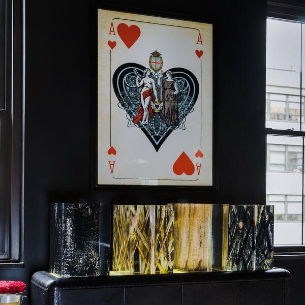 The eye-catching Aces collection blends vintage inspiration with a modern twist. Inspired by old books, letters and bonds collected over years of travel, each Ace is an original design by Timothy Oulton's in-house artist. Detailed engravings and Florentine marbling are reinterpreted for a more contemporary feel, printed on museum quality paper with an aged finish and framed in black wood.