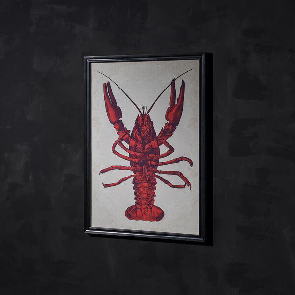 Based on drawings found in a science sketchbook from the early 1900s, this striking Lobster artwork presents humble creatures of the sea in stunning vintage fashion. Printed on archival paper and framed in painted black wood.