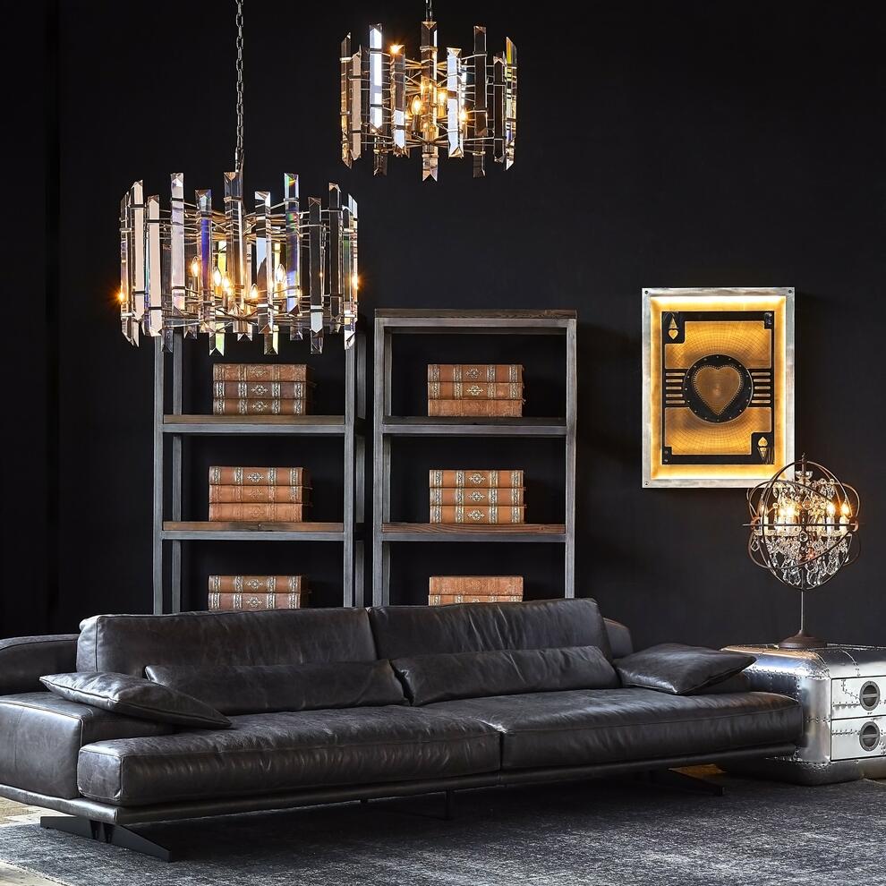 Handcrafted from shimmering prisms of K9 optical glass, the Light Wheel pendant is a unique play on industrial chic. From directly below looking up, the pendant is shaped like a bicycle wheel, with each prism of the wheel held in place by the metal spokes. The triangular prisms have been smoked on one side, making the lightbulb behind it disappear in an optical illusion, creating a series of magical moments where the prisms continue to shine and sparkle of their own accord.