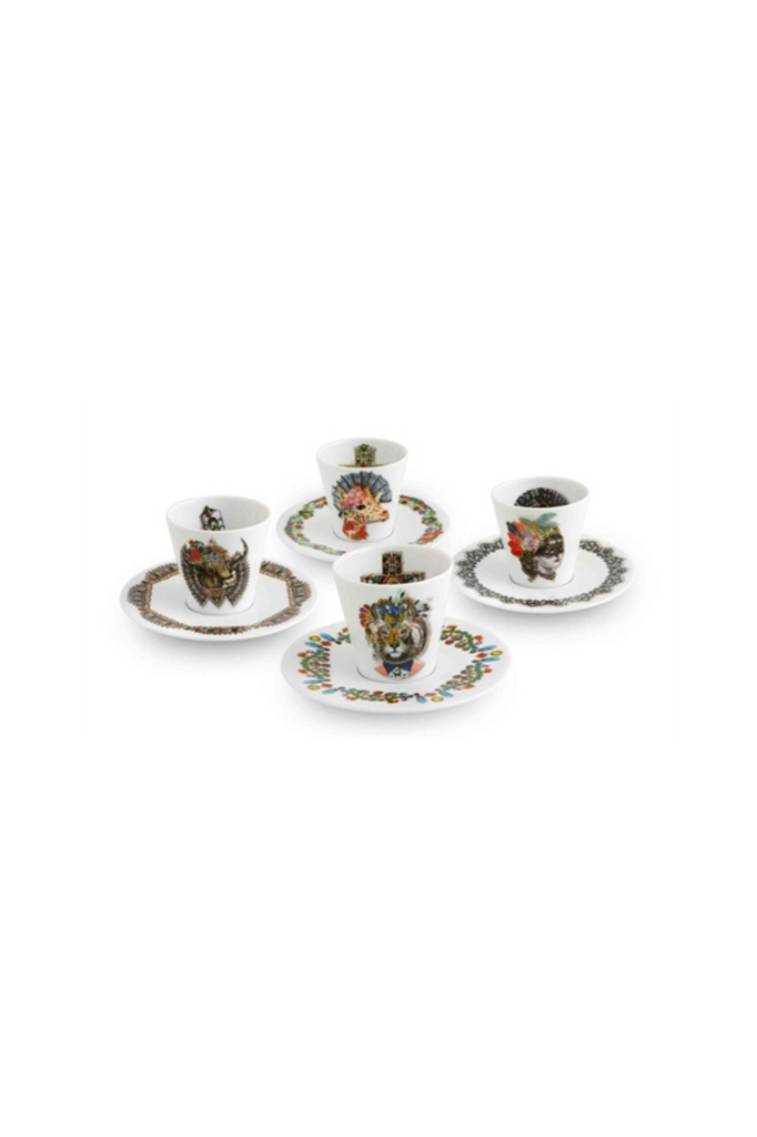 Set 4 Coffee Cups with Saucers Fête Vos Jeux